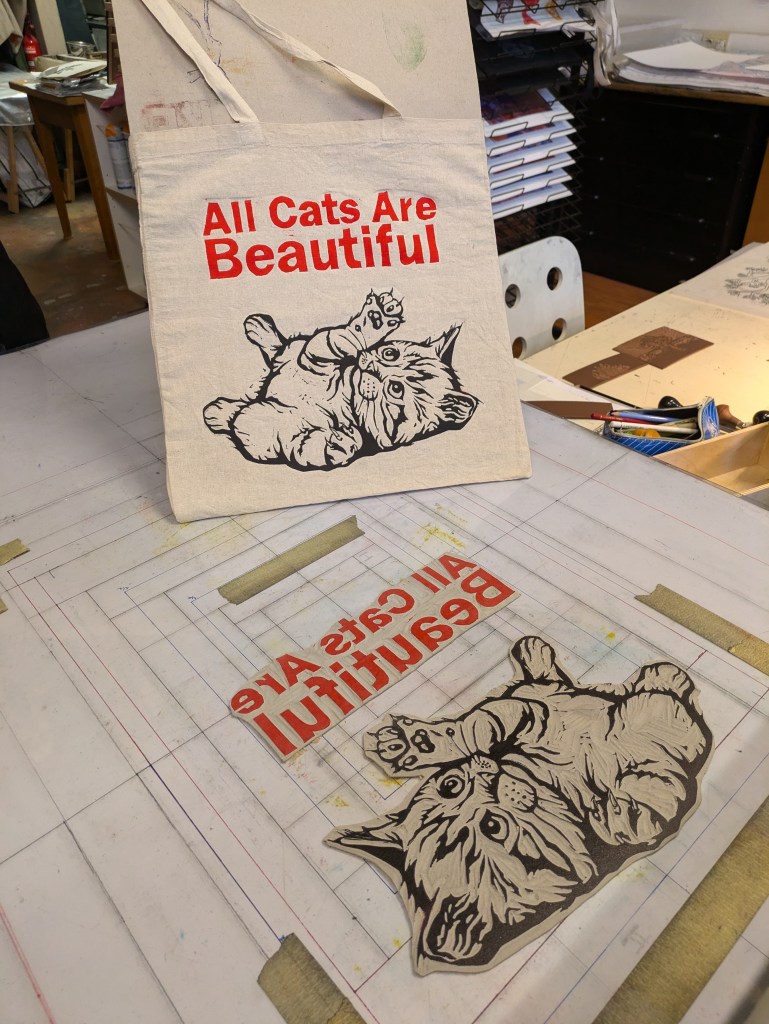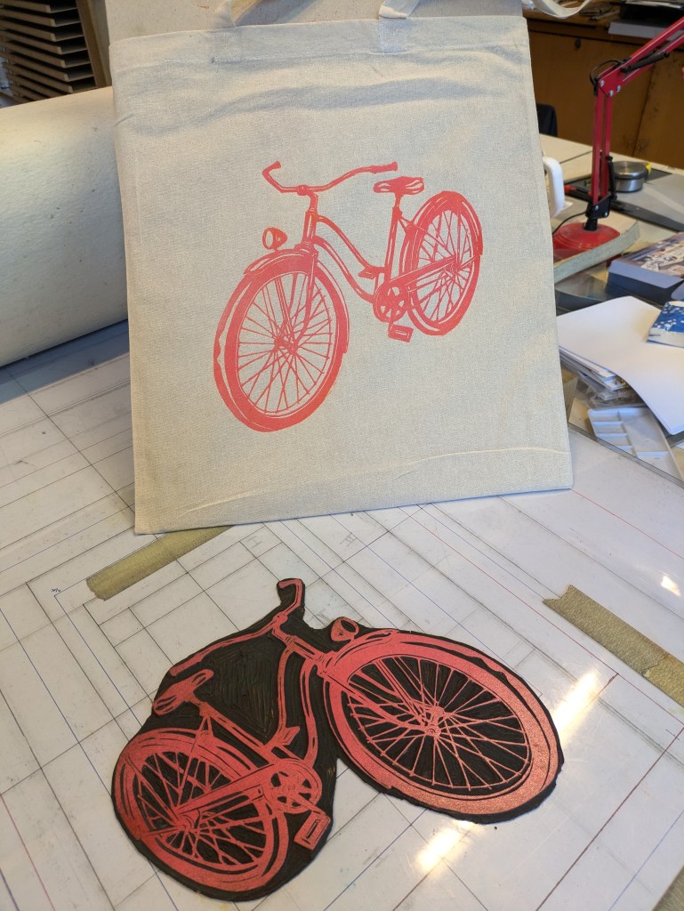 Impression textile en linogravure sur tote-bags le 30 novembre de 10h à 17h.