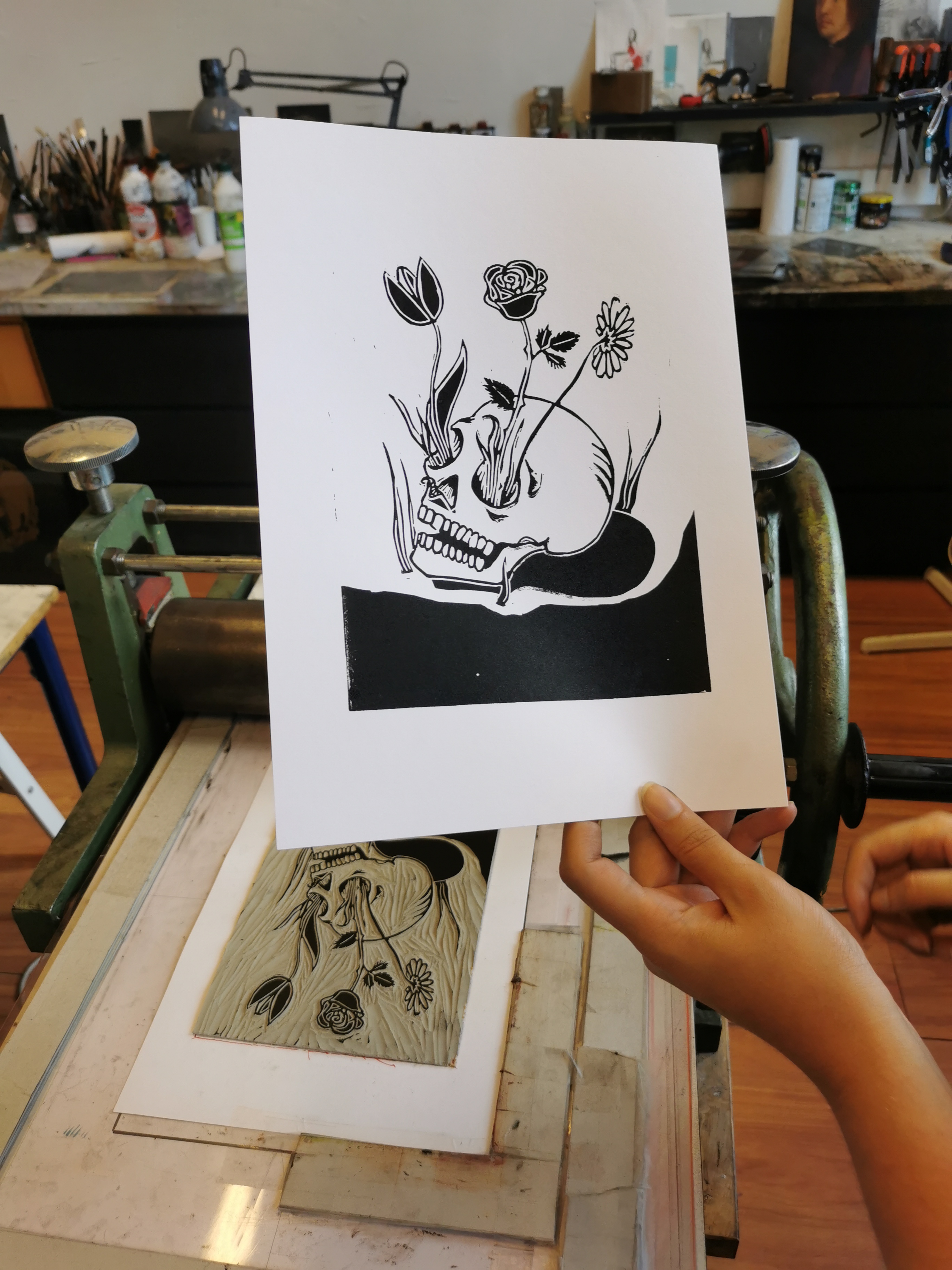 Aucune connaissance n’est prérequise, ni en dessin ni en gravure : l’atelier s’adapte à votre niveau et vos envies. N’hésitez pas à venir avec des croquis ou des photos. Vous pourrez découvrir comment fonctionne un atelier d’estampe et réaliser vous même de beaux tirages grâce à nos presses. Nous vous guiderons pour l’élaboration d’une belle image et vous donnerons des astuces et des conseils.