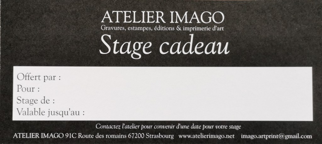 Vous souhaitez offrir un stage d’initiation à la gravure ? Nous proposons des cartes cadeaux pour offrir une initiation à vos proches, amis ou collègues, à différentes techniques telle que la linogravure, l’eau-forte, la pointe sèche et d’autres procédés fascinant.