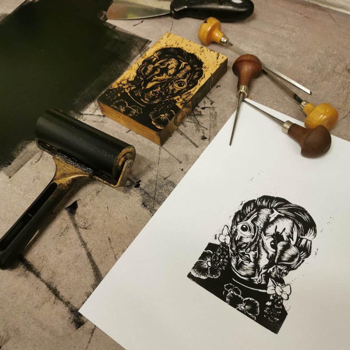 Sur un après-midi, une ou deux journées, pour apprendre à créer une belle image sur une matrice et l’imprimer.